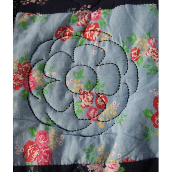 Envers en coton : imprimé d'un motif floral bleu marine et blanc surpiqué à la main.