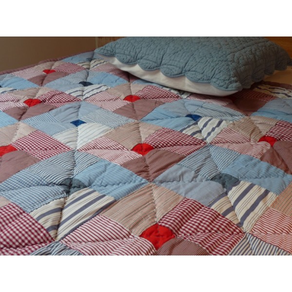 Envers en coton à petits carreaux vichy rouge et blanc. Surpiqué à la main, en diagonales.