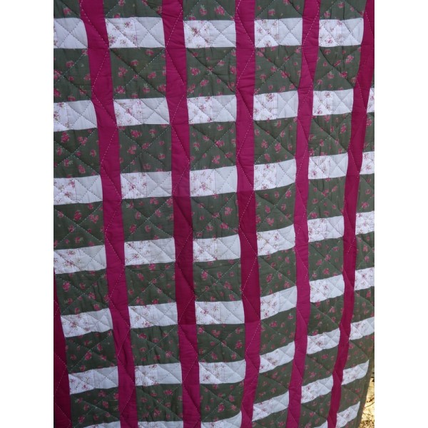 Envers en coton patché : tissu imprimé, motif roses surpiqué à la main