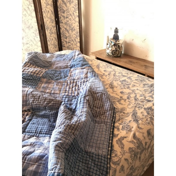 Prenez des bouts de tissu tous bleus et vous obtiendrez ECLECTIC, fait de bouts de tissus collectés ici et là , une robe d'été, une nappe endormie dans un placard, un écossais ancien chiné à la campagne, un dhoti du Tamil Nadu... Mixez, jetez sur votre lit, fauteuil ou canapé, pour la nuit ou pour la sieste, en amoureux de bleu !